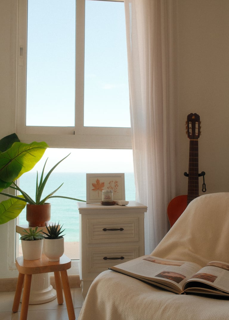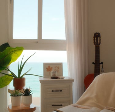 I’m a self-taught artist and someone who feels most grounded when I’m close to nature. I live in Málaga with my husband, and most days you’ll find me painting in a small corner of our apartment that I turned into a studio. It’s where I spend slow mornings with a cup of coffee, sorting through brushes, watching the light shift over the Mediterranean, and letting ideas settle.